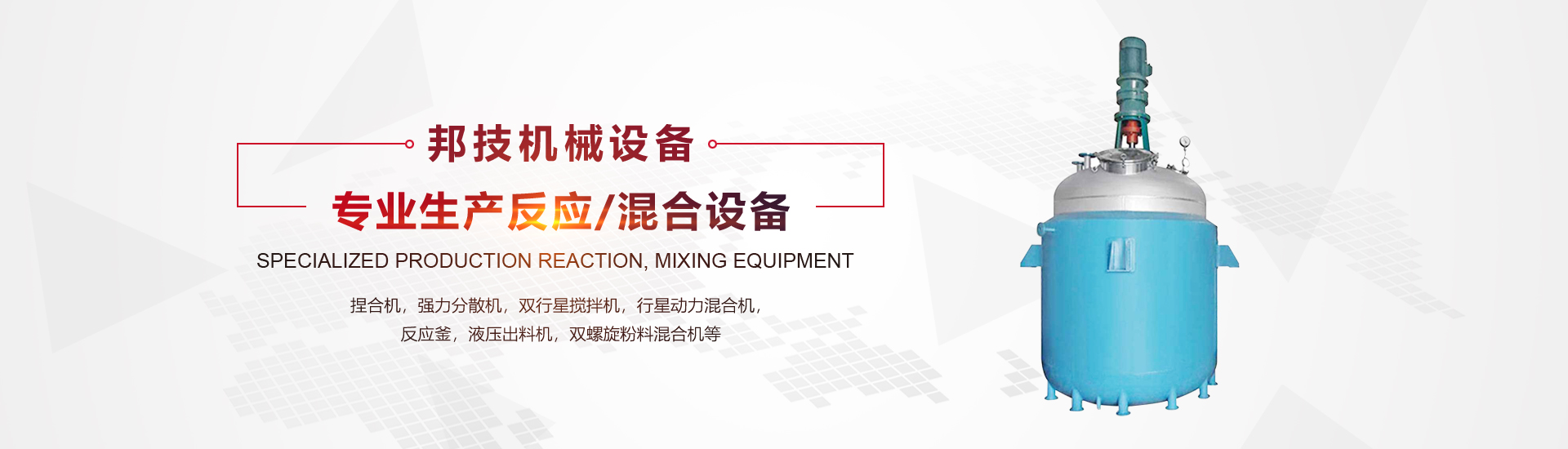 捏合機(jī)系列 反應(yīng)釜系列 強(qiáng)力分散機(jī)系列 行星攪拌機(jī)系列 動(dòng)力混合機(jī)系列 粉料混合機(jī)系列 分散機(jī)系列 壓料機(jī)系列